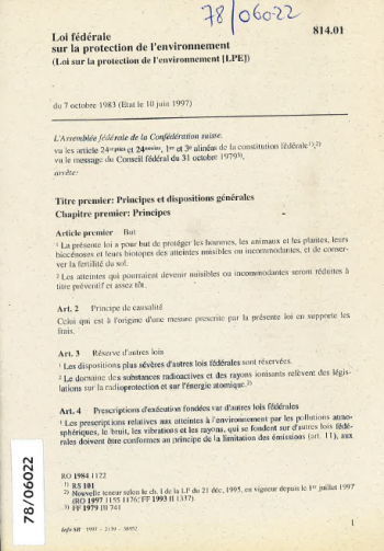 Loi fédérale sur la protection de l'environnement (Loi sur la protection de l'environnement ILPEI) du 7 octobre 1983