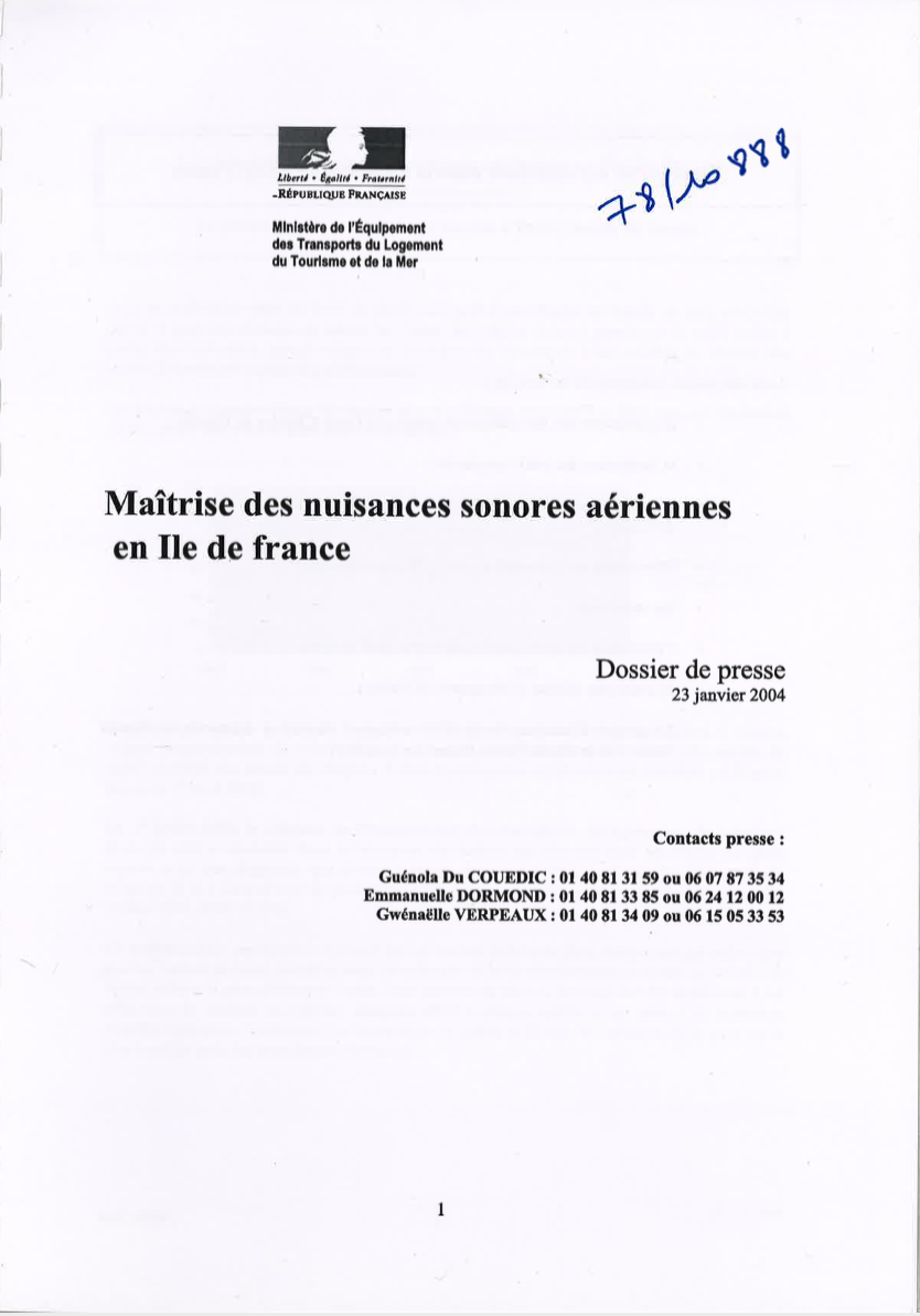 Maîtrise des nuisances sonores aériennes en Ile-de-France. Dossier de presse