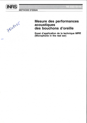 Cet article d'écrit la technique mire (mesure de niveaux sonores dans le conduit auditif par microphone miniature), appliquée à la mesure des performances acoustiques de bouchon d'oreille de type bouchon moulé individualisé. Les affaiblissements acoustiques mesurés au moyen de cette technique ont été comparés, pour le même protecteur, à ceux obtenus par la méthode subjective reat (méthode normalisée de déplacement du seuil d'audition). Les résultats montrent un bon accord entre les deux méthodes, sauf à la fréquence 8 kHz. Cette divergence peut être corrigée moyennant quelques précautions de mise en oeuvre. -