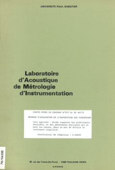 L'objectif de l'étude est de vérifier s'il existe une possibilité raisonnable de proposer une méthode simple pour la surveillance des sujets soumis aux vibrations, sans proposer a priori de nouvelle métrologie précise. L'étude comprend trois parties: une analyse bibliographique destinée à cerner les connaissances sur les effets des vibrations sur l'homme au travail, une analyse des phénomènes physiques pour la recherche des caractéristiques prédominantes qui peuvent être à l'origine des effets physiologiques constatés, et une approche épidémiologique sur un échantillon de sujets soumis aux vibrations d'engins de chantier pour tenter d'établir une corrélation entre le poste de conducteur d'engins avec ses vibrations, et la fréquence des lombalgies. -