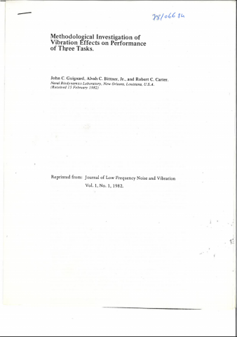 Enquête méthodologique sur les effets des vibrations sur l'accomplissement de trois tâches. L'étude est effectuée sur 20 marins soumis à des vibrations du corps entier. Le test a été fait avant, pendant, et après la vibration, avec des tâches à la fois visuelles, motrices et cognitives. Résultats de l'étude. -