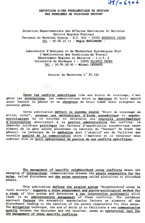 Méthodologie de traitement de bruits de voisinage issue de l'exploitation de cas réels. In: Huitième symposium Bruit et vibrations, La Rochelle, 21-23 Mai 1990