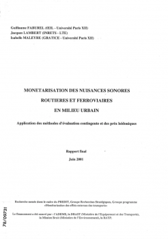 Monétarisation des effets externes des transports. Coût d'évitement du bruit.