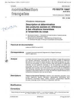 Norme FD ISO/TR 10687. Vibrations mécaniques. Description et détermination des postures assises en référence à des vibrations transmises à l'ensemble du corps