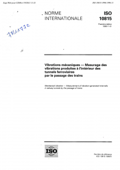 Norme ISO 10815. Vibrations mécaniques. Mesurage des vibrations produites à l'intérieur des tunnels ferroviaires par le passage des trains