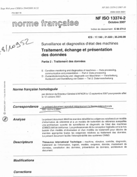 Norme ISO 13374-2. Surveillance et diagnostic d'état des machines. Traitement, échange et présentation des données. Partie 2 : Traitement des données