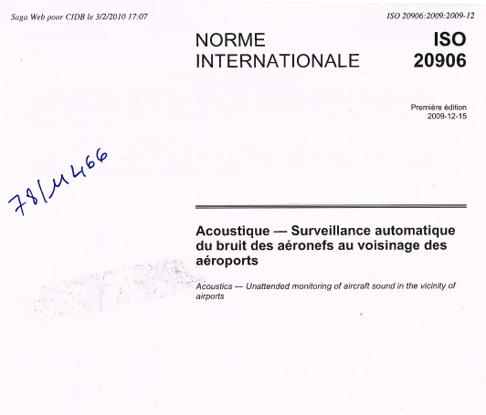 Norme ISO 20906. Surveillance automatique du bruit des aéronefs au voisinage des aéroports