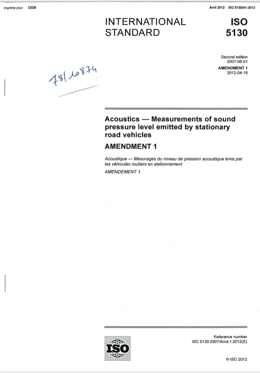Norme ISO 5130. Measurements of sound pressure level emitted by stationary road vehicles