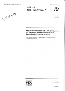 Norme ISO 6395. Engins de terrassement. Détermination du niveau de puissance acoustique. Conditions d'essai dynamique. Bâtiments et constructions; Equipements, technologies, recherche 2008 Norme acoustique fondamentale - mesure de bruit - niveau sonore -