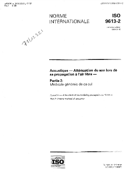 Norme ISO 9613-2 - acoustique - atténuation du son lors de sa propagation à l'air libre. Partie 2 : Méthode générale de calcul
