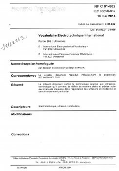 Norme NF C 01-802. Vocabulaire électrotechnique international. Partie 802 : Ultrasons.