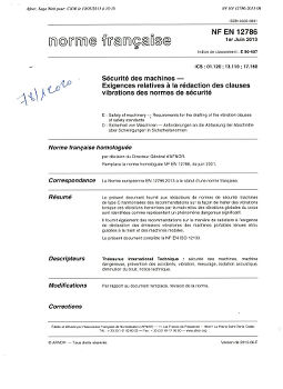 Norme NF EN 12786. Sécurité des machines. Exigences relatives à la rédaction des clauses vibrations des normes de sécurité