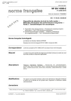 Norme NF EN 14389-2. Dispositifs de réduction du bruit du trafic routier. Méthodes d'évaluation des performances à long terme. Partie 2 : caractéristiques non acoustiques.