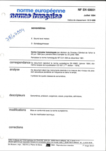 Norme NF EN 60651. Sonomètres