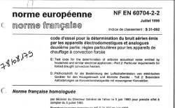 Norme NF EN 60704-2-2 - code d'essai pour la détermination du bruit aérien émis par les appareils électrodomestiques et analogues - deuxième partie