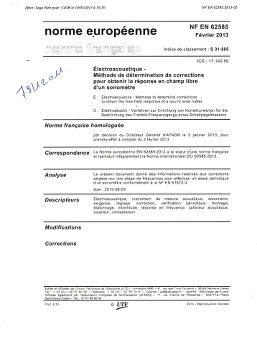 Norme NF EN 62585. Électroacoustique. Méthode de détermination de corrections pour obtenir la réponse en champ libre d'un sonomètre