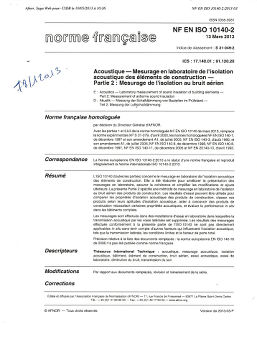 Norme NF EN ISO 10140-2. Acoustique. Mesurage en laboratoire de l'isolation des éléments de construction. Partie 2 : Mesurage de l'isolation au bruit aérien