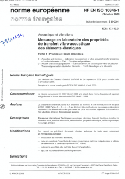 Norme NF EN ISO 10846-1. Mesurage en laboratoire des propriétés de transfert vibro-acoustique des éléments élastiques. Partie 1 : Principes et lignes directrices