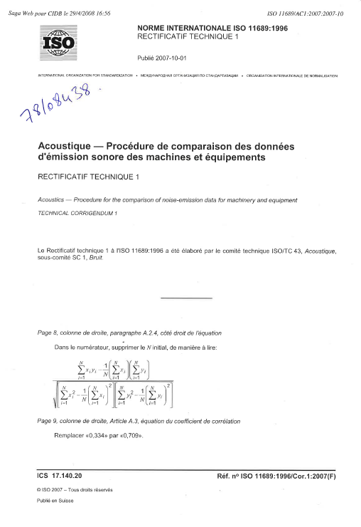 Norme NF EN ISO 11689. Procédure de comparaison des données d'émission sonore des machines et équipements