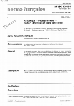 Norme NF EN ISO 12913-1. Acoustique. Paysage sonore. Partie 1 : définition et cadre conceptuel