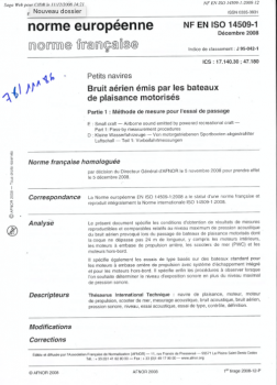Norme NF EN ISO 14509-1. Bruit aérien émis par les bateaux de plaisance motorisés. Partie 1 : Méthode de mesure pour l'essai de passage