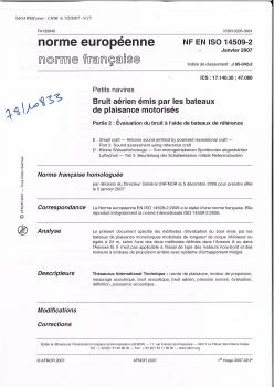Norme NF EN ISO 14509-2. Petits navires. Bruit aérien émis par les bateaux de plaisance motorisés. Partie 2 : Évaluation du bruit à l'aide de bateaux de référence.