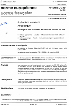 Norme NF EN ISO 3381. Applications ferroviaires. Mesurage du bruit à l'intérieur des véhicules circulant sur rails