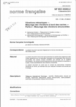Norme NF ISO 20283-2. Vibrations mécaniques. Mesurage des vibrations à bord des navires. Partie 2 : Mesurage des vibrations structurelles