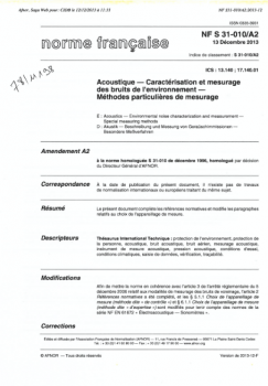 Norme NF S 31-010/A1. Caractérisation et mesurage des bruits de l'environnement. Méthodes particulières de mesurage
