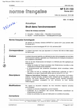 Norme NF S 31-133. Bruit dans l'environnement. Calcul de niveaux sonores