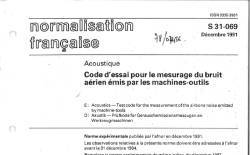 Norme S 31-069 - Code d'essai pour le mesurage du bruit aérien émis par les machines-outils