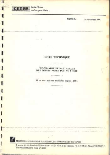 Note technique : programme de rattrapage des points noirs dus au bruit, bilan des actions réalisées depuis 1984