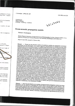 Discussion de la complexité de l'environnement acoustique sous-marin, énumération des méthodes adoptées par les modélisateurs, description et commentaires des modèles spécifiques quant à leurs limites, leur aptitude à résoudre différents types de problèmes, et leur disponibilité. Plusieurs modèles sont présentés ainsi que plusieurs logiciels dans le domaine temporel. Tous les modèles identifiés, 30 au total, sont réunis dans un tableau, ainsi que des commentaires sur leurs capacités et limitations, et leurs laboratoire d'origine. -