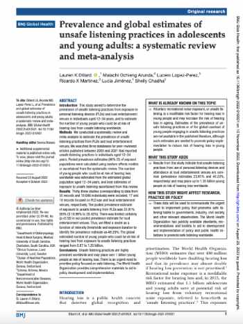 Prevalence and global estimates of unsafe listening practices in adolescents and young adults: a systematic review and meta-analysis