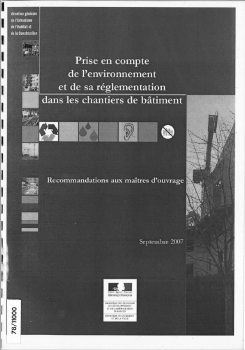 Prise en compte de l'environnement et de sa réglementation dans les chantiers de bâtiment. Recommandations aux maîtres d'ouvrage.