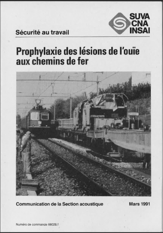 Exposition aux bruits dans les services des chemins de fer suisses. Le chapitre 3 traite les risques de lésions de l'ouïe et d'accidents du travail. Le chapitre prophylaxie décrit de quelle manière peuvent être réduites ces lésions de l'ouïe par la prise de mesures techniques, de mesures d'organisation et de mesures médicales. -