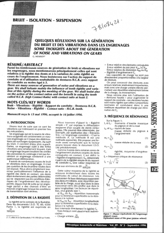 Parmi les nombreuses sources de génération de bruit et vibrations sur les engrenages, cet article mentionne principalement celles qui sont relatives à la rigidité des dents et à la variation de cette rigidité au cours de l'engrènement. Il insiste sur l'action du rapport de conduite et d'utilisation souhaitable de dentures H.C.R. avec rapport de conduite au moins égal à 2. -