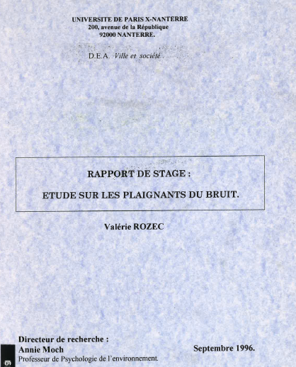 Cette étude met en lumière les différentes caractéristiques des plaignants du bruit (échantillon de 65 plaignants). Elle établit également le lien entre la sensibilité du plaignant et sa représentation du gêneur. -