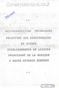 Recommandations techniques relatives aux discothèques et autres établissements de loisirs produisant de la musique à hauts niveaux sonores