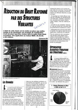 Mise en place chez Renault Véhicules Industries d'une méthodologie de modélisation d'une structure type bloc moteur. Application au moteur MIDR 06-35-40. Analyse modale effectuée avec le logiciel Entek. Pour le calcul par éléments finis, le modèle est constitué de 2 000 éléments, coques et poutres, et de 5 000 nœuds ; le maillage est réalisé avec Supertab. -