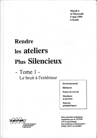 Rendre les ateliers plus silencieux, Tome 1: le bruit à l'extérieur . In : Journées techniques, Senlis, 4-5 mai 1999