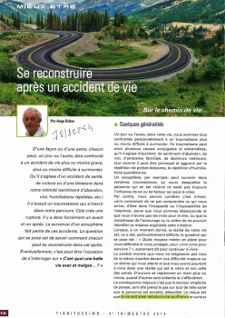 Cet article explique comment d'une façon ou d'une autre, chacun peut, un jour ou l'autre, être confronté à un accident de vie plus ou moins grave, plus ou moins difficile à surmonter. Qu'il s'agisse d'un accident de santé, de voiture ou d'une blessure dans notre intimité (sentiment d'abandon, viol, humiliations répétées, etc) il s'ensuit un traumatisme qui s'inscrit dans notre parcours. Cela crée une rupture. Il y a donc forcément un avant et un après. La survenue d'un acouphène fait partie de ces accidents. La question qui se pose est de savoir comment chacun peut se reconstruire dans cet après. Eventuellement, c'est peut être l'occasion de s'interroger sur : c'est quoi une belle vie avec et malgré ? -
