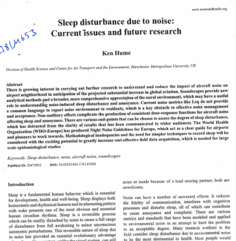 Sleep disturbance due to noise : Current issues and future research