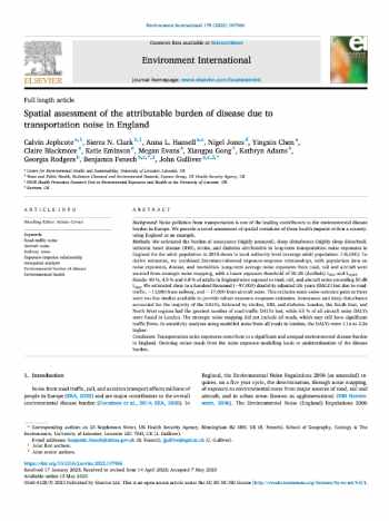 Évaluation spatiale de la charge de morbidité attribuable au bruit des transports en Angleterre. Pour ces chercheurs de l'Agence britannique de sécurité sanitaire (UKHSA), la charge de morbidité liée à l’exposition au bruit des transports est sous-estimée, notamment parce que l’exposition des populations aux routes secondaires n’est pas prise en compte dans la modélisation du bruit réalisée, par exemple, en Angleterre. 40% d’entre eux sont exposés à des niveaux moyens de bruit générés par la circulation routière supérieurs à 50 décibels. -