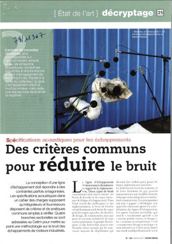 Spécifications acoustiques pour les échappements. Des critères communs pour réduire le bruit
