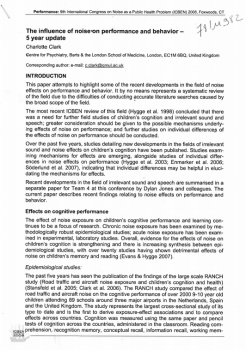 L'influence du bruit sur les performances et le comportement. Résultats de 24 recherches récentes menées sur le sujet : les études ont porté surtout sur le bruit à l'école. Les études sur les adultes sont moins nombreuses et expérimentales. -
