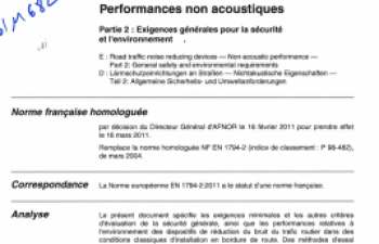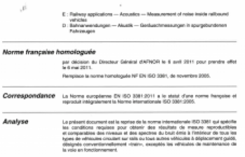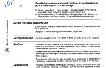 Norme NF EN 15461+A1. Applications ferroviaires. Émission sonore. Caractérisation des propriétés dynamiques de sections de voie pour le mesurage du bruit au passage