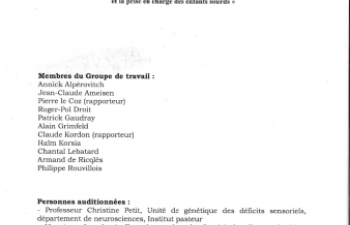 AVIS N°103. Éthique et surdité de l'enfant : éléments de réflexion à propos de l'information sur le dépistage systématique néonatal et la prise en charge des enfants sourds