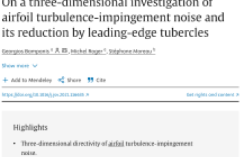 Etude en trois dimensions du bruit de turbulence des profils aérodynamiques et de sa réduction par des tubercules de bord de direction