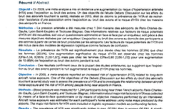 Niveau tensionnel moyen et risque d'hypertension chez les riverains des aéroports en France
